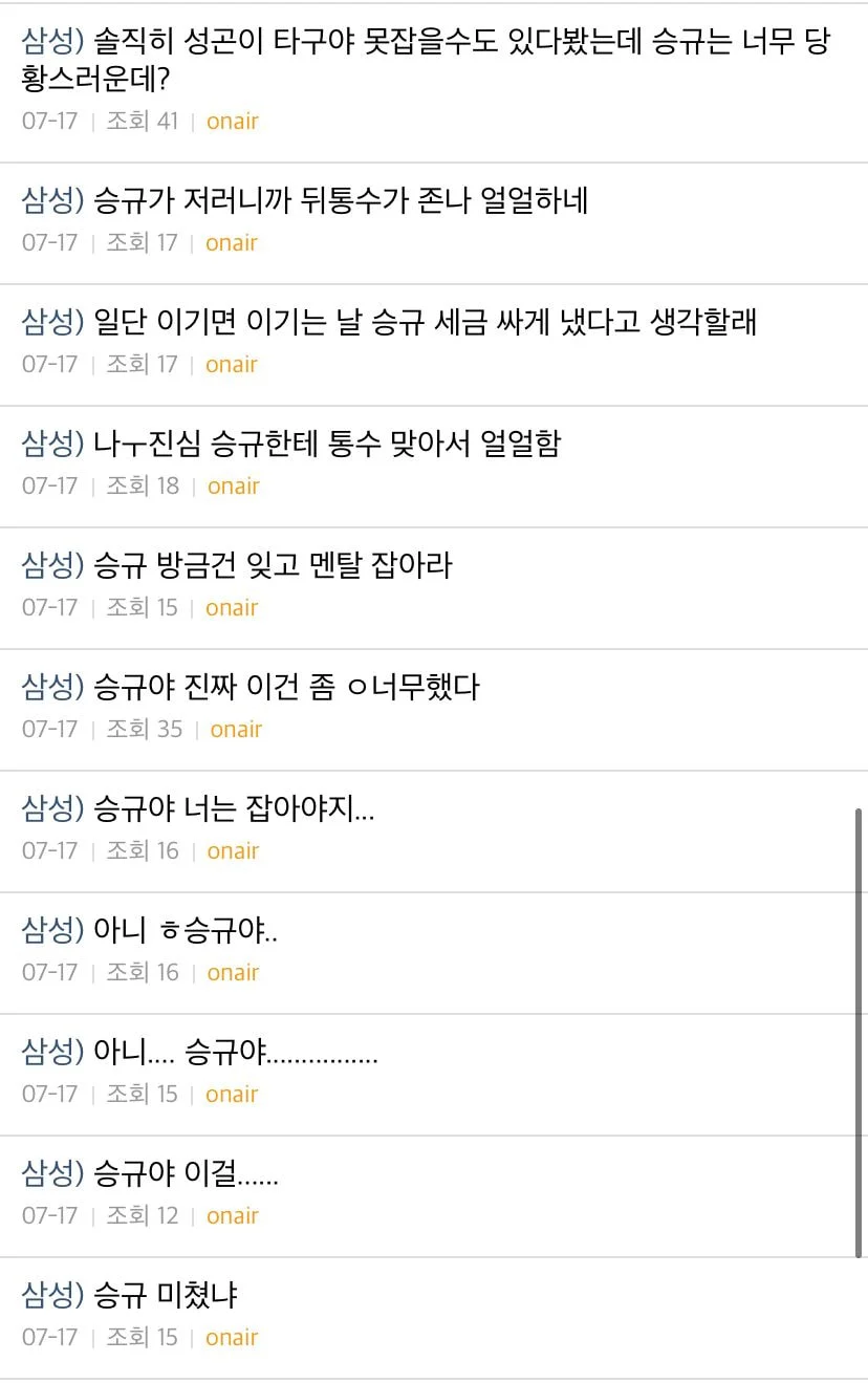 때는 2020년 7월 17일 롯데-삼성전