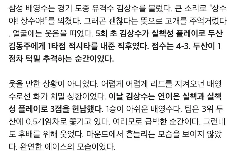 전전 주장인 김상수가 갬성의 인터뷰를 하는데...