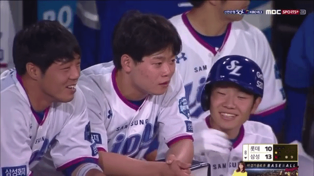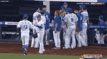 그리고 어수선해진 덕아웃 분위기를 다 잡기 위해 코치가 집합시키는 와중에도 위로받는 박승규(등번호 65번)