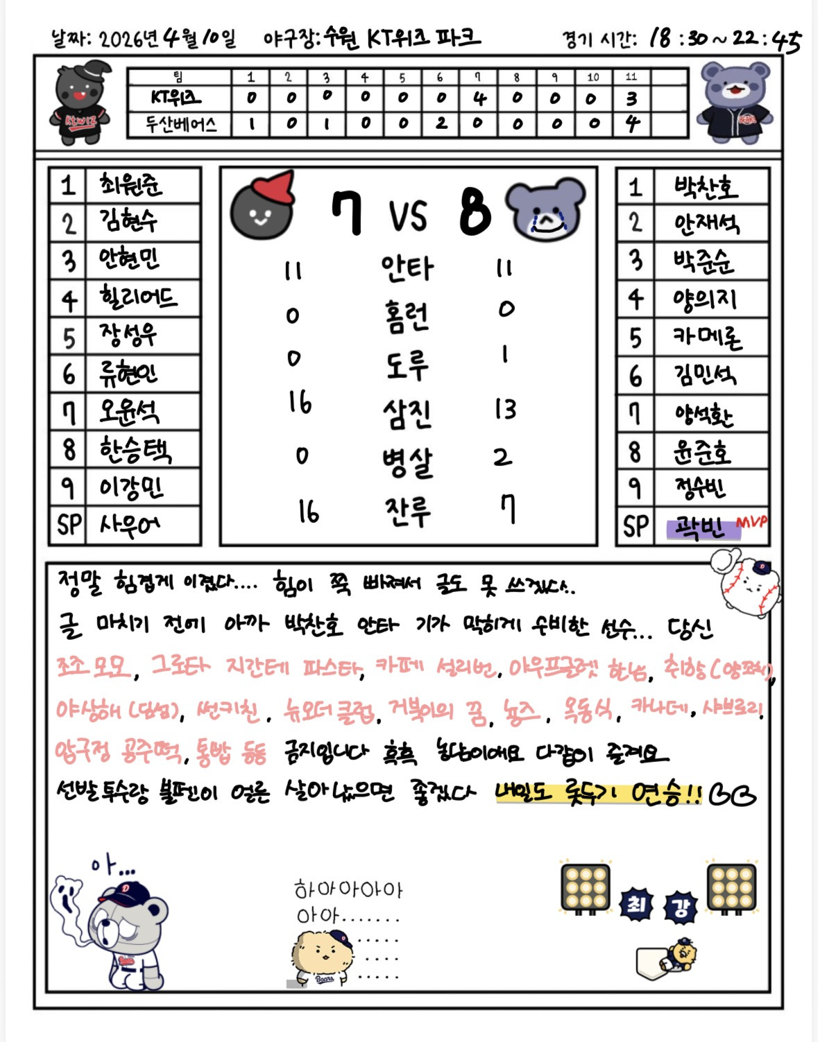 0410 집관 다이어리 작성자JB|작성시간26.04.10|조회수451 목록 댓글 8 글자크기 작게가 글자크기 크게가 다음검색 현재 게시글 추가 기능 열기 북마크 신고 센터로 신고 댓글 댓글 8 댓글쓰기 답글쓰기 댓글 리스트 작성자JB | 작성시간 26.04.10 ㄱㅇㅇ 내일 롯두기 3연승ㄱㄱ 작성자JB | 작성시간 26.04.10 와 맛집 리스트 뭐야?? 작성자JB | 작성시간 26.04.10 맛집 알아가요~ 작성자JB | 작성시간 26.04.10 귀여웤ㅋㅋㅋ 작성자JB | 작성시간 26.04.10 글씨 귀여우ㅏ 댓글 전체보기