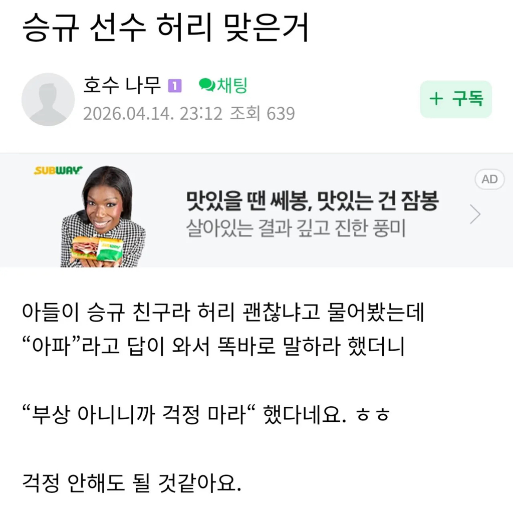 사사방은 진심 뭐하는 곳일까 작성자JB|작성시간26.04.15|조회수2,109 목록 댓글 23 글자크기 작게가 글자크기 크게가 친구 엄마 피셜 ㅇㅈㄹㅋㅋㅋㅋㅋ 다음검색 현재 게시글 추가 기능 열기 북마크 신고 센터로 신고 댓글 댓글 23 댓글쓰기 답글쓰기 댓글 리스트 작성자JB | 작성시간 26.04.15 사사방은 ㄹㅇ 성별 나이 출신 모든게 예측이 안됨 작성자JB | 작성시간 26.04.15 똑바로 말하라 ㅅㅂㅋㅋ 작성자JB | 작성시간 26.04.15 개웃기다 아ㅜㅜㅜ 작성자JB | 작성시간 26.04.15 아 작성자JB | 작성시간 26.04.15 아 ㅈㄴ웃겨 댓글 전체보기