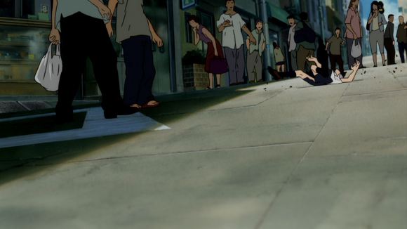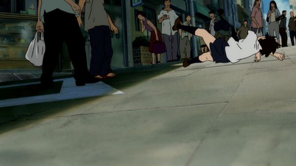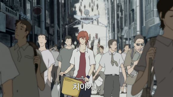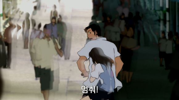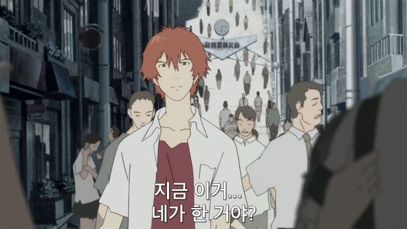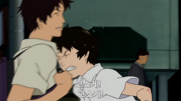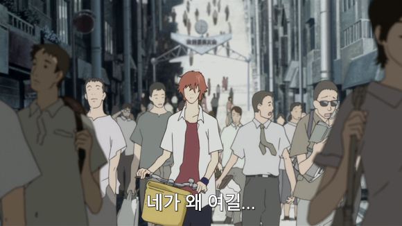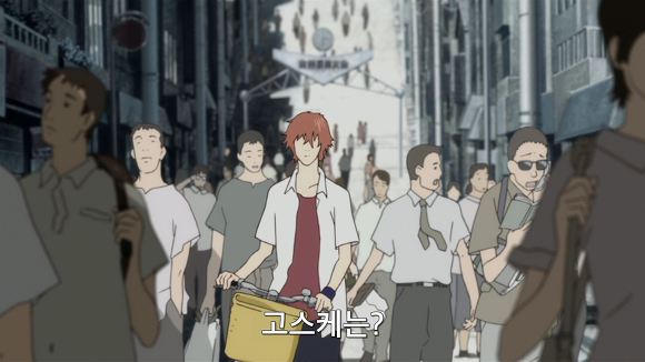 다른 사람과 부딪히면서도 앞만 보고 내달리는 마코토.