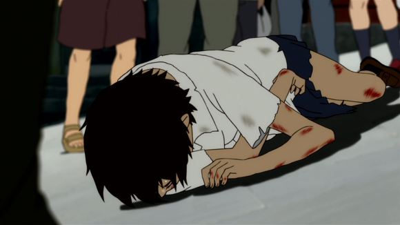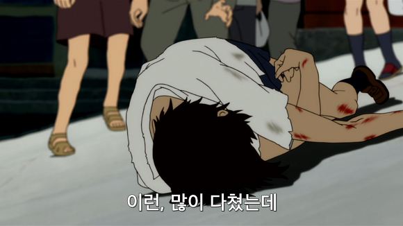 온몸에 상처 투성이가 되고, 당장 일어나 고스케에게 달려갈 수 없게 됨.