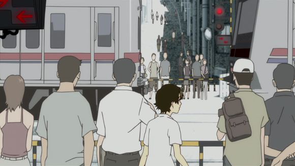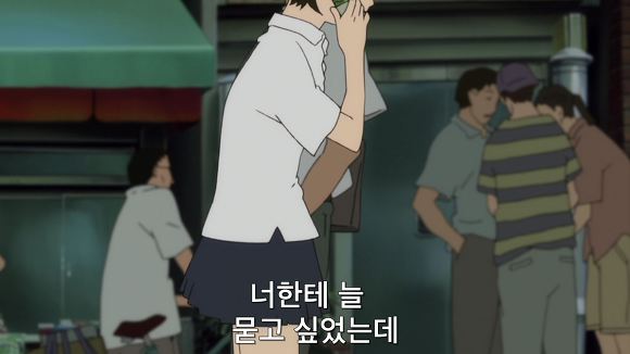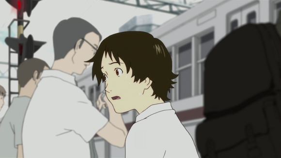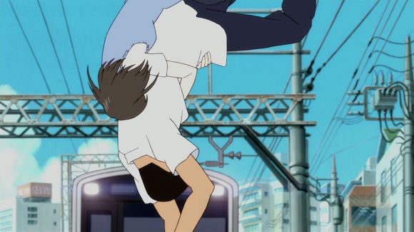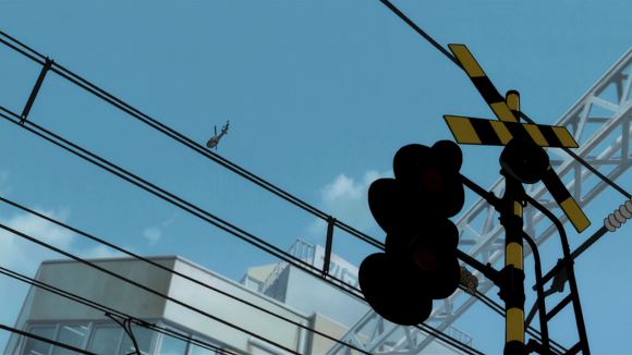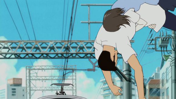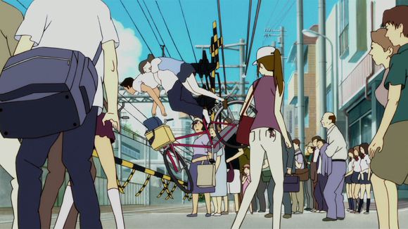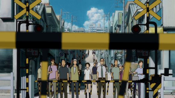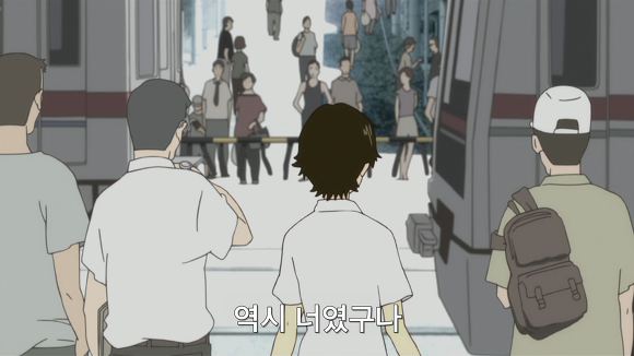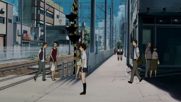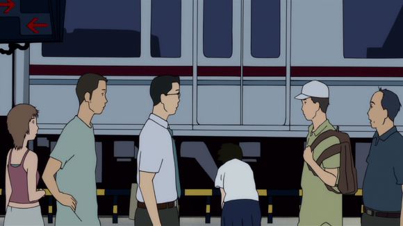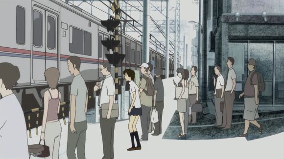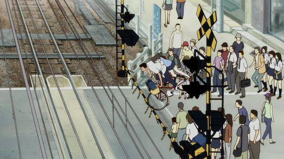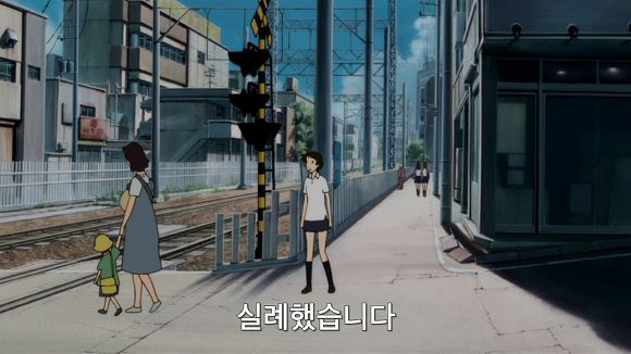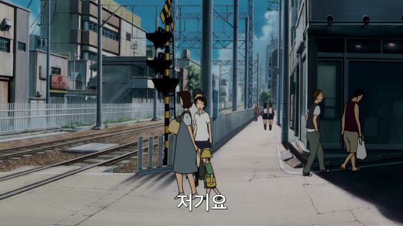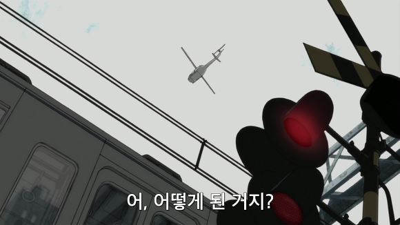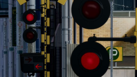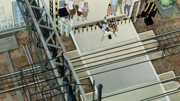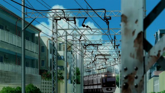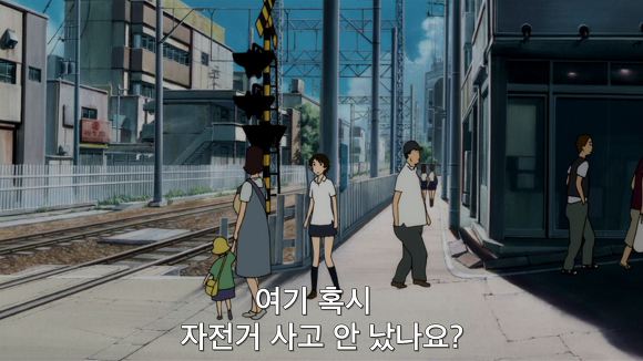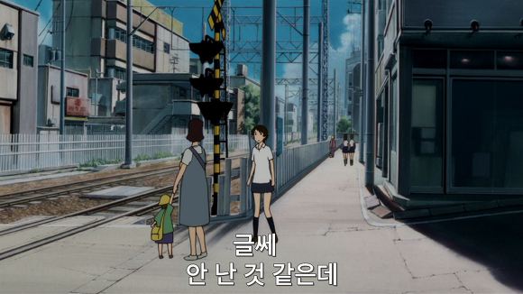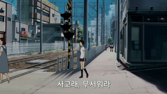 마코토가 도착하자마자 앞으로 쌩하고 지나가는 기차.