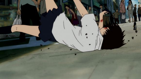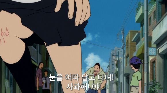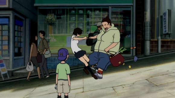 마코토가 그랬던 것 처럼 자전거에서 튕겨올라오게 되고...