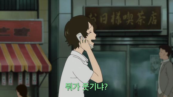 브레이크가 고장난 것을 알리없는 고스케와 카호를 보고,