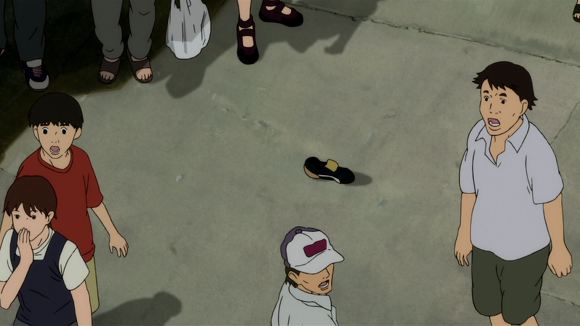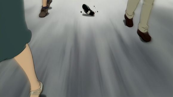 자전거를 멈추려 땅을 끌던 고스케의 신발이 벗겨져