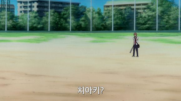 야구장에서 고스케와 마코토를 기다리는 치아키.