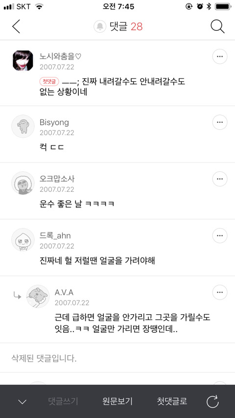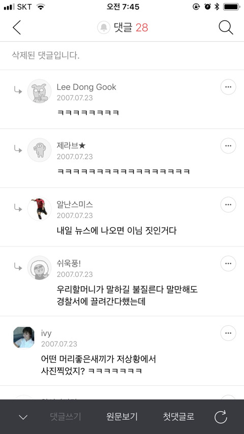 삭제된 댓글에 우르르 웃는 리댓 달린 거 보면 얼추 예상 가능하듯이