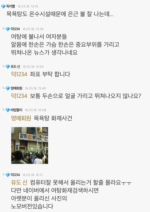 여자 나체 보려고 여탕에 불 지르겠다는 댓글이었음.
