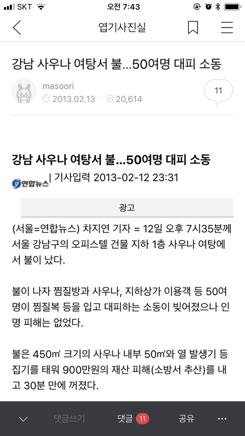 아래에는 내가 가입된 남초 두 카페의 여탕 화재사건에 대한 반응이고 물론 이번 제천 화재 사건에 대한 건 아니야. 그러나 이러한 농담식 여혐들이 조금씩 바탕이 됐다는 걸 알아줬으면 좋겠어.