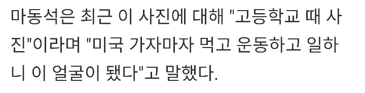 [기사]마동석, 리즈시절 사진에 대해 "고등학교 때 사진…먹고 운동하니 이 얼굴" 작성자조준호|작성시간18.01.15|조회수158,969 목록 댓글 53 글자크기 작게가 글자크기 크게가 http://m.newsinside.kr/news/articleView.html?idxno=484460#_theptep 다음검색 현재 게시글 추가 기능 열기 북마크 공유하기 신고 센터로 신고 댓글 댓글 53 댓글쓰기 답글쓰기 댓글 리스트 답댓글 작성자따개비바람개비물개비느개비 | 작성시간 18.01.16 ㅋㅋㅋㅋㅋㅋㅋㅋㅋㅋㅋㅋㅋㅇㅈ 작성자여기로 모이라! | 작성시간 18.01.16 와 하정우 작성자동물칭구칭기 | 작성시간 18.01.16 이기우다 삭제된 댓글입니다. 답댓글 작성자조준호 작성자 본인 여부 작성자 | 작성시간 18.01.16 최민용? 댓글 전체보기