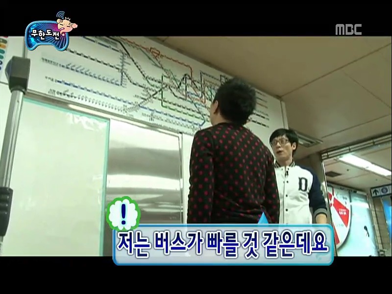 같은 정류장 바로 옆에 노홍철한테 몇번 타냐고 물어봄