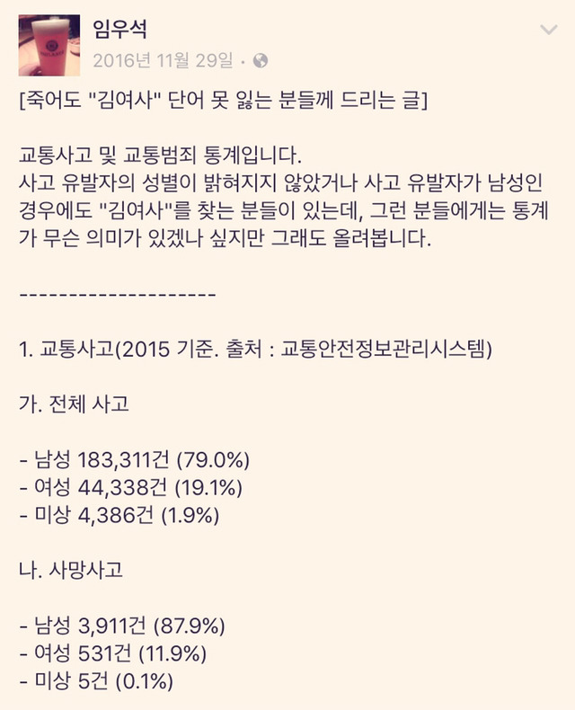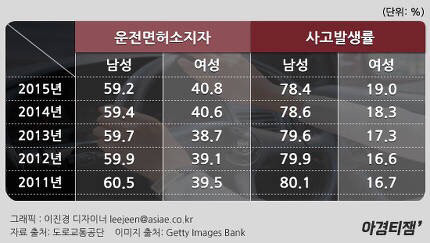 김여사라고 여자 후려치기 할만큼 여성운전자 사고비율이 높지도 않음.