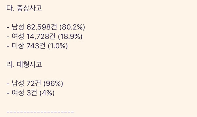 굳이 후려치기 하고 싶으면 여성운전자보다 남성운전자를 후려치기할 이유가 더 많다는 거.