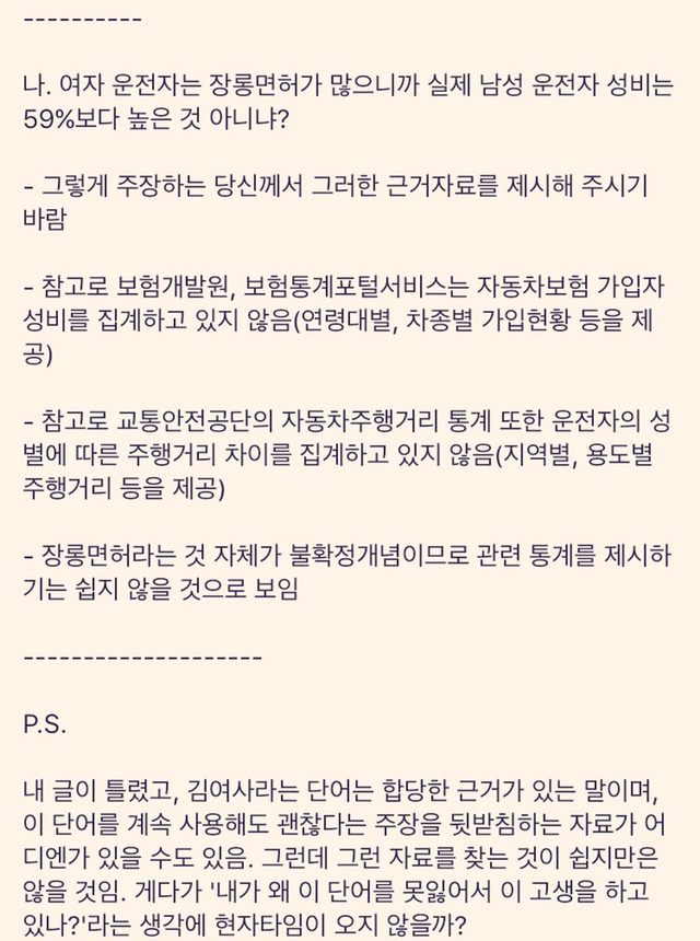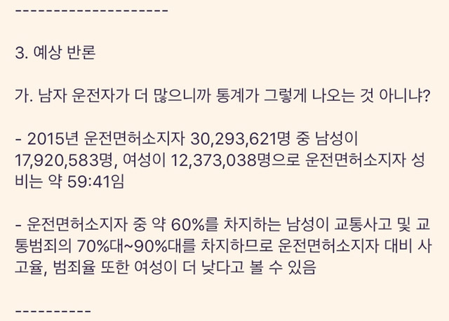 3. 여자는 장롱면허가 많다? ㄴㄴ 여성이 장롱면허가 많다는 통계 어딨음?