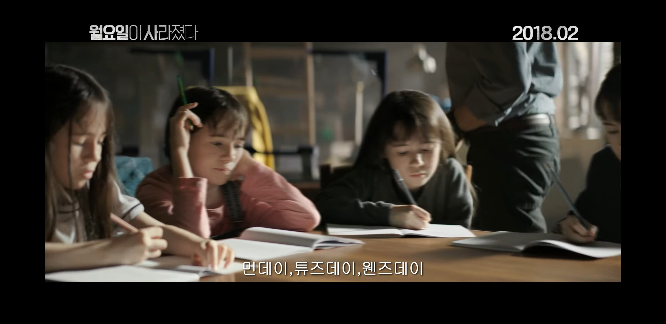 이들을 몰래 키우기로 결심한 외할아버지 ‘테렌스 셋맨’은 먼데이, 튜즈데이, 웬즈데이, 써스데이, 프라이데이, 새터데이, 선데이라는 이름을 지어주고 쌍둥이들이 발각되지 않고 모두 살아 남을 수 있도록 엄격한 규칙을 만든다.
