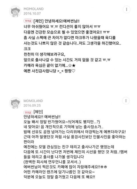 작성자infinite 성종 작성시간 18.02.23 왘ㅋㅋㅋㅋㅋㅋㅋ성공했네 ㅋㅋㅋㅋㅋㅋ와 나 여기 어딘지 알아 와 진짜 신기해..안그래도 모모랜드 요새 계속 찾아보고 얘보고 존예다 했는데.. 저 당시 중3이였을텐데 홈마라니 대단!! 심지어 저날 모모랜드 1위해서 성규가 축하해줬는데ㅠㅠ