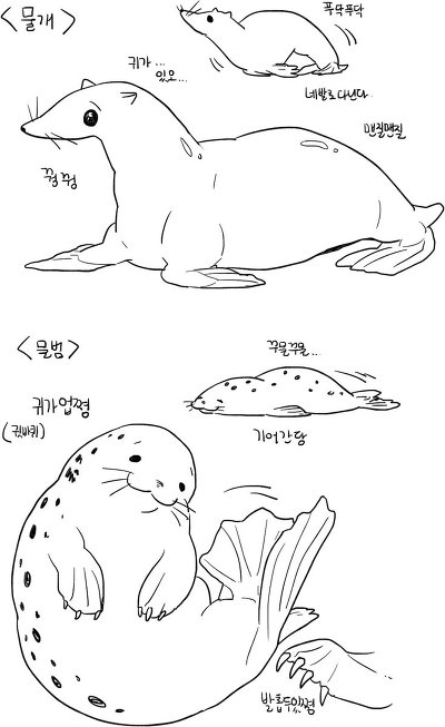 흔히 생각하는 물개는 위의 모습인 경우가 많은데