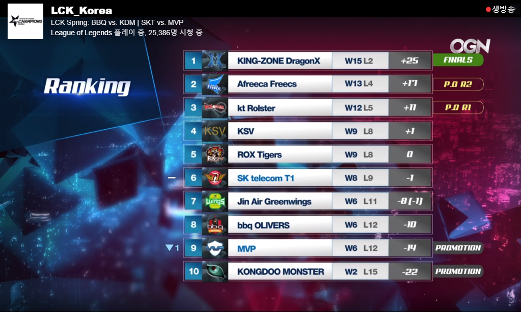 [게임][LOL] MVP 승강전 확정.. LCK 현재순위 및 포스트시즌 진출을 결정하는 운명의 다음경기 일정.jpg