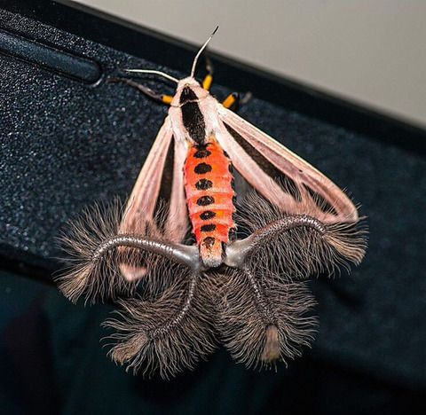 creatonotos gangis 라고 인도네시아에 서식하는 나방 저뒤에 털달린 기관은 페로몬때문에 저렇게 진화했다고...
