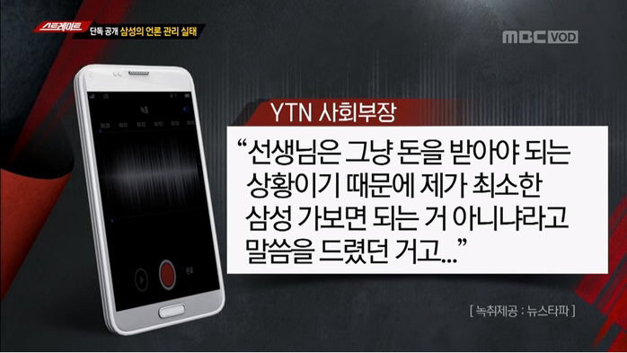 '스트레이트'에 따르면 류 부장은 YTN 경제부장을 통해 제보자와 삼성을 연결했다.