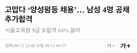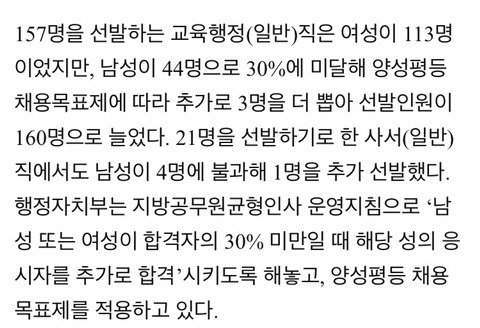 양성평등채용 운운하며 14명 모두 남자 추가합격