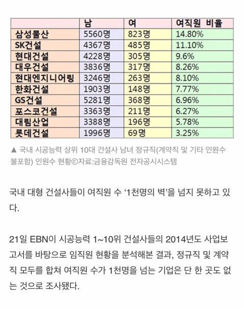 2014년 상위건설사 남녀 비율