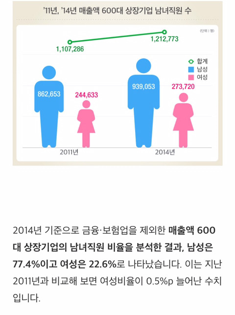 2011-2014 3년간 여성 고용비율 0.5% 증가
