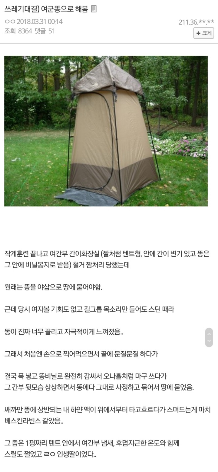 [스크랩] [기타]여군 똥으로 자위하는 남성 작성자쇅스|작성시간18.04.18|조회수9,853 목록 댓글 52 글자크기 작게가 글자크기 크게가 ㅊㅊ 헬스갤러리 다음검색 스크랩 원문 : 쭉빵카페 현재 게시글 추가 기능 열기 북마크 공유하기 신고 센터로 신고 댓글 댓글 52 댓글쓰기 답글쓰기 댓글 리스트 작성자투영해서 보기 | 작성시간 18.04.18 아 개드럽네 작성자비구멍 | 작성시간 18.04.18 찍어...먹어..?시발??? 작성자동공쥬 | 작성시간 18.04.18 어ㅏ.... 작성자대휘사랑둥이 | 작성시간 18.04.18 아 ㅁㅊ... 작성자The 람 쥐 | 작성시간 18.04.19 아 더러워.. 댓글 전체보기