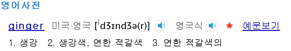 이것은 네이버 영어사전에 나온 ginger의 뜻이야