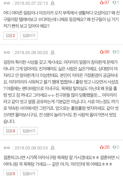 다른 친구들한테 같이 씻자고 하니 다 따로 한다고 하더라고요