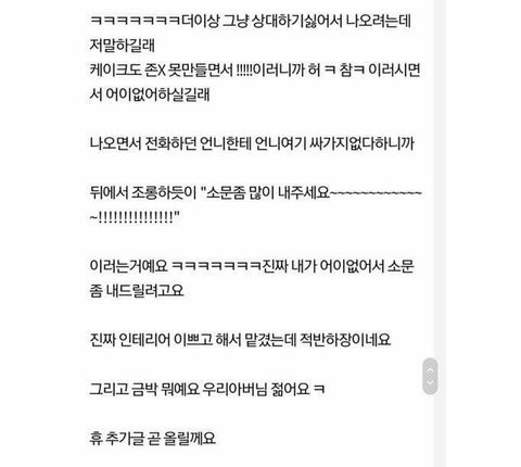 작성자내이름은코란,경전이죠 작성시간 18.05.13 나 제주도에서 이런 비슷한일 있었어 사장이 인스타에 나랑 통화한거라 cctv 촬영한거 올리겠다고 협박했었는데.... 나는 가게갔다가 1분도 안되서 나가라고해서 말도못하고 나오고 전화로는 자기가 나한테 생각없는데 미친년 또라이같은년 하면서 욕했으면서 .. 나중엔 자기 인스타 스타라고 내 신상 다까서 욕하겠다고 했었는데 ㅠㅠ