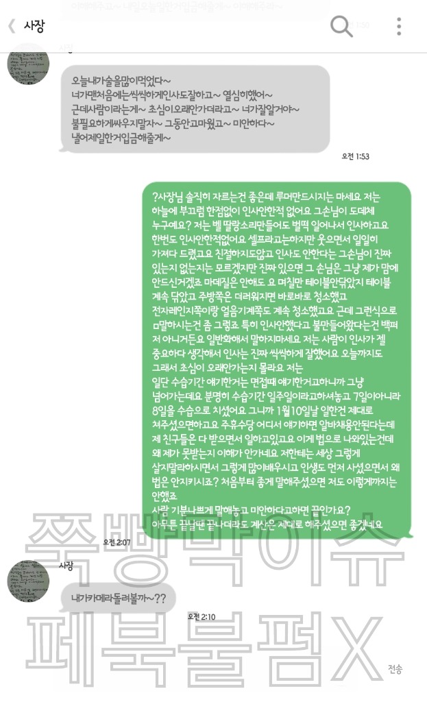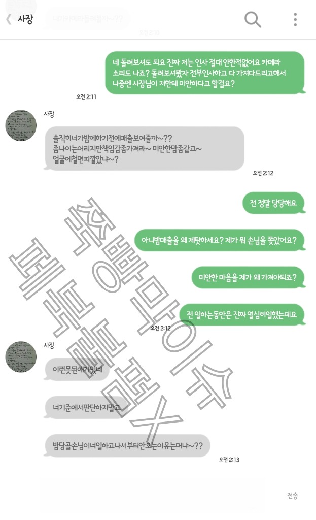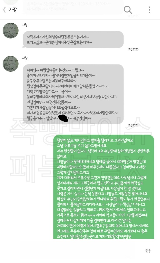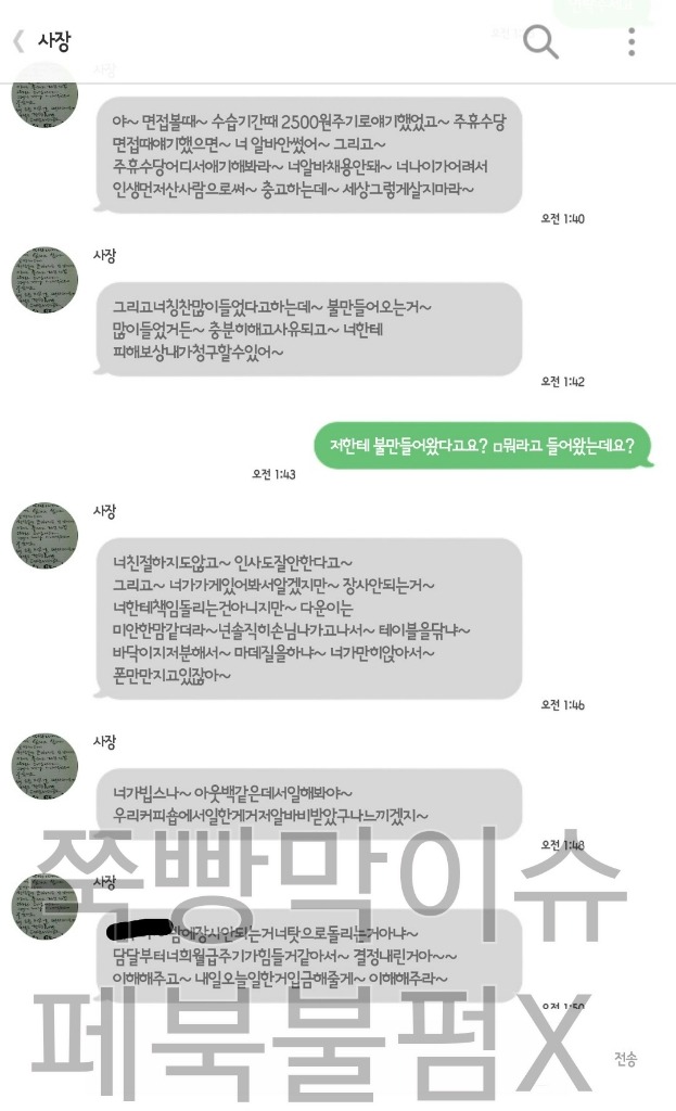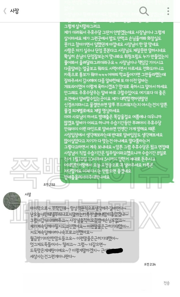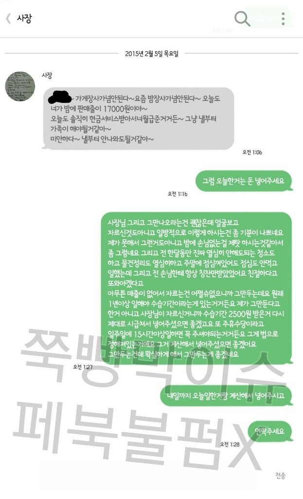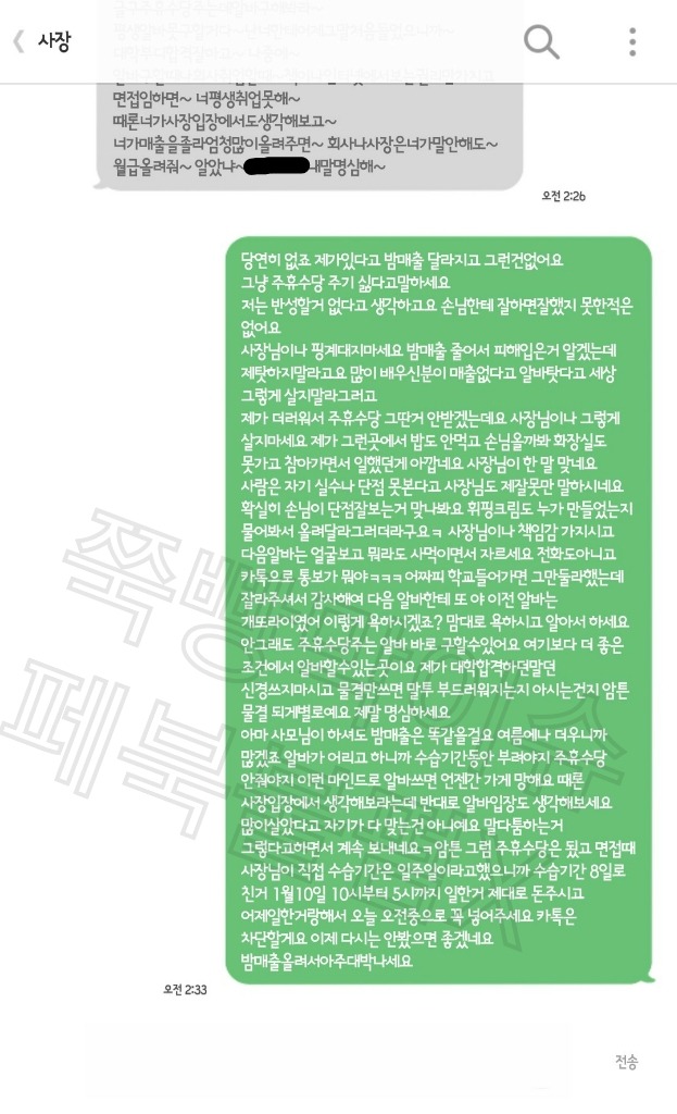 작성자정윤호박유천김재중심창민김준수 작성시간 15.02.06 일어떻게했는지그런건어차피일더이상안하니까상관없고 돈이나제대로줘 후..나알바한거생각난다 사장이저러진않았지만나도주휴수당이런거더알아보고달라고할걸.. 2년일하고퇴직금도못받음..