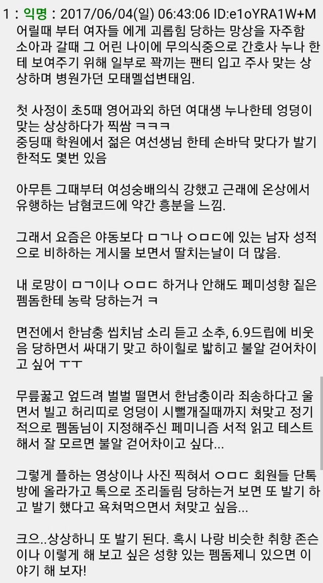 작성자안녕망고 작성시간 18.05.20 ㅋㅋㅋㅋ뭐야 노예남으로 굴려먹기 딱좋겠네.. 천박한 몸뚱아리 작은 좃 발딱발딱 서는 모습 보고 싶내요 ㅎㅎ 귀여운 것~~