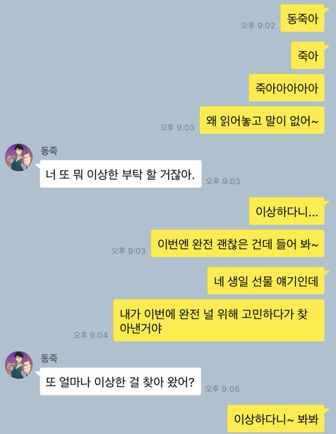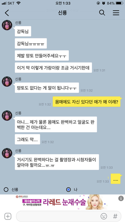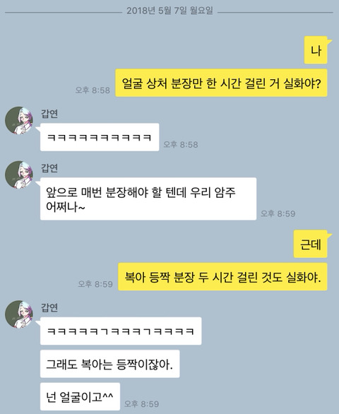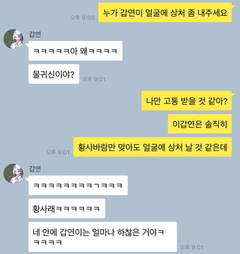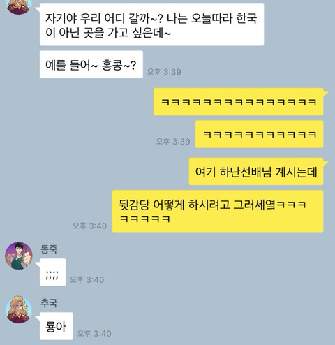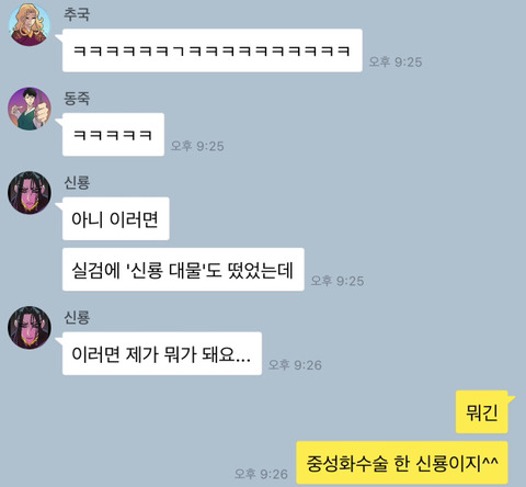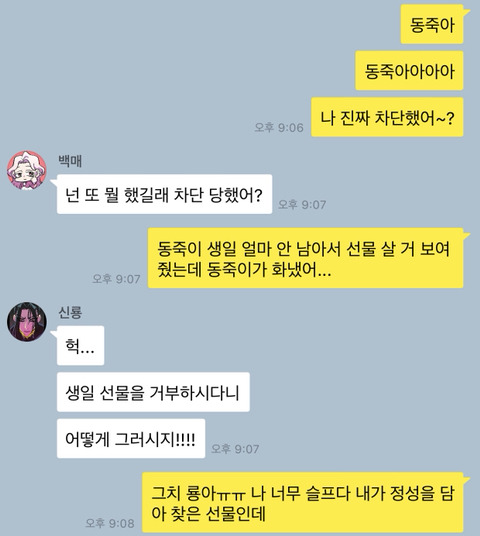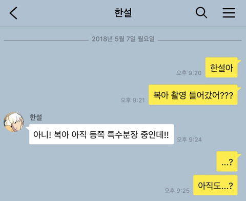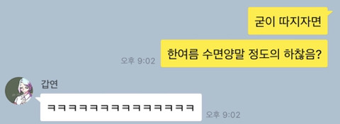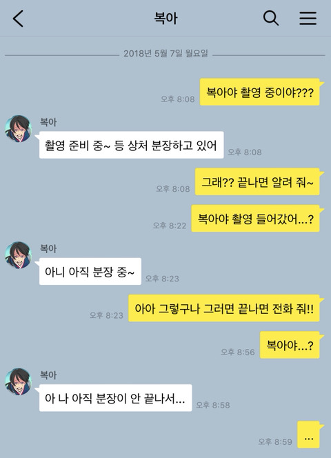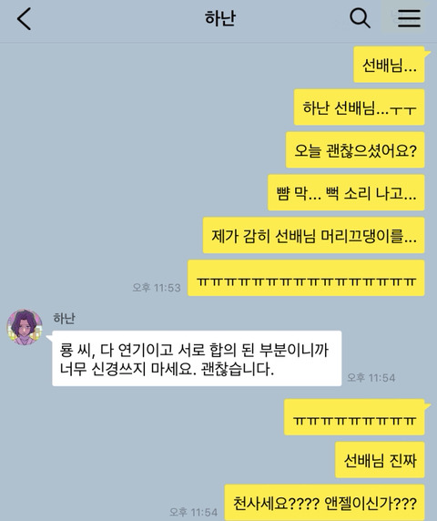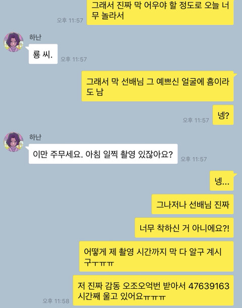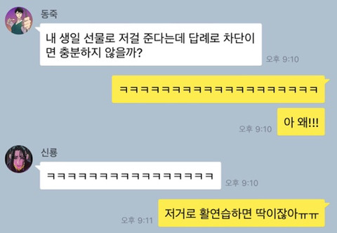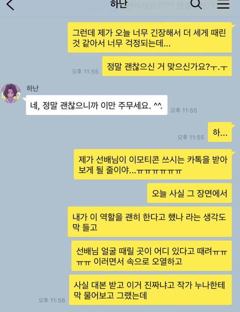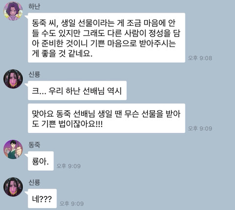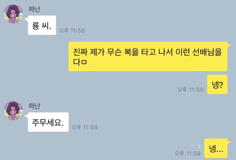 하난이는 이 때 몸져누운 상태였지만 신룡의 카톡을 차단할까 말까 서른 번 이상 고민하고 잠들었다.