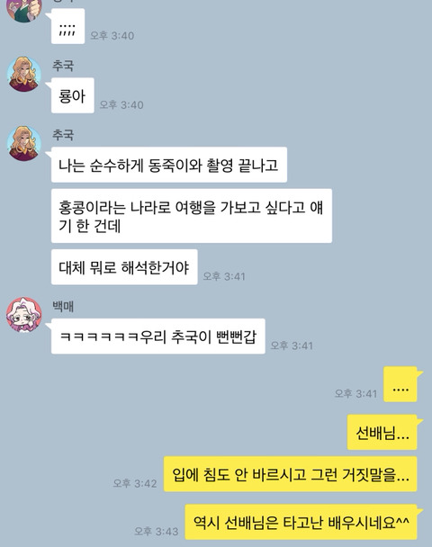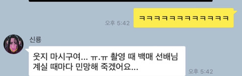 이렇게 한참을 웃다가 동죽이한테 활대로 한 대 맞고 촬영장에서 쫓겨남
