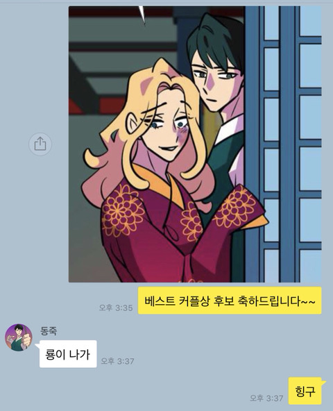 동죽이와 추국이는 이 한 컷이 인터넷에 이슈가 되어 떠돌며 베스트 커플상 후보에 올랐다.