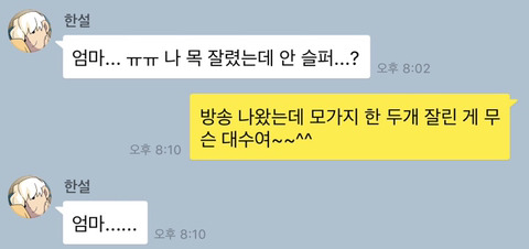 Q. 한설이 매번 몸이 부서지는 역할을 하는데...ㅜㅜ 부모님이 슬퍼하시지는 않나요?