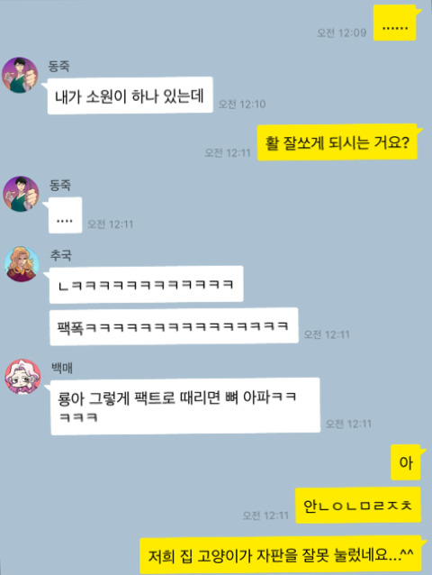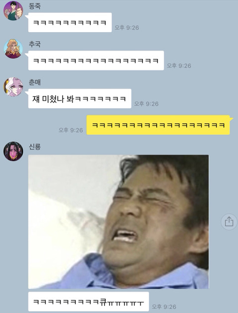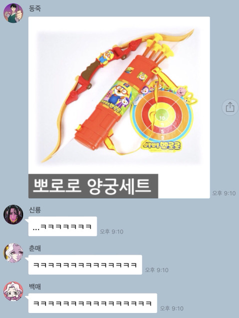 "ㅋㅋㅋㅋㅋㅋ컄ㅋㅋㅋㅋㅋㅋㅋ동죽이 넠ㅋㅋㅋㅋㅋㅋㅋㅋ 활도 없는데 표정 진지한 것 봨ㅋㅋㅋㅋㅋㅋㅋ"-추국