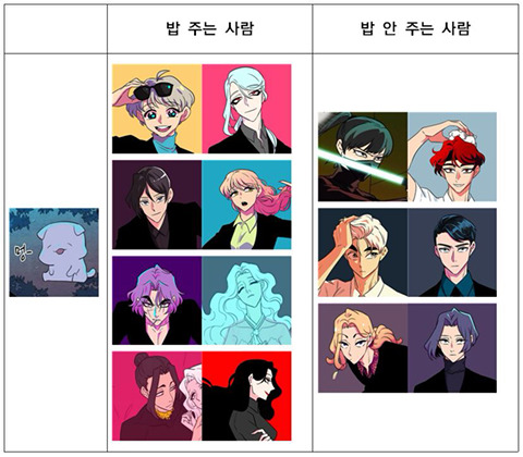 복아 - 설문지를 받자마자 명영이를 1순위로 완전 친함에 넣었다. 개돌이와 친해지고 싶어 밥과 간식을 챙겨주는데 강아지를 처음 접하는 거라 개돌이에게 존댓말을 사용하며 앓고 있다.