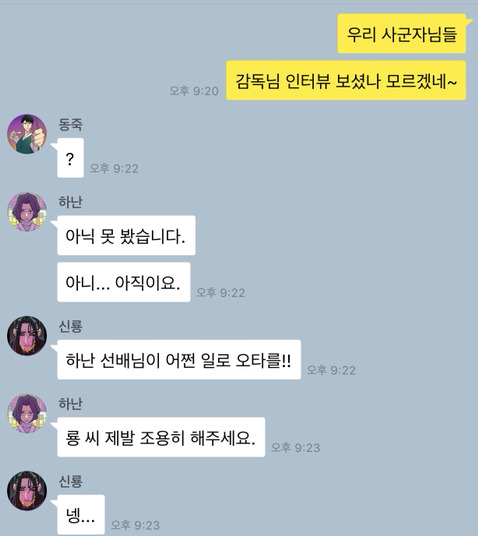Q. 헉 룡군자+백매 단톡방이라니!! 일상 대화가 궁금해요!