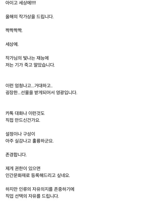 작성자Kepler-22B 작성시간 18.06.22 헐 대박.... 진짜 최고다ㅠㅠㅠㅠㅠ 왕 멋지고 왕 재밌어~~~~~ 고생많았구 다음편 염치없이 기다릴게 키키키 최고얌♡