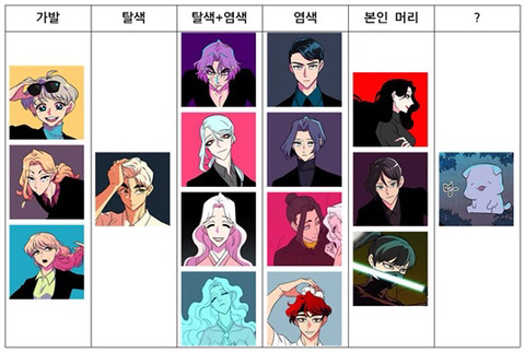 Q. 촬영 당시 가발을 쓰는 사람과 염색을 한 사람이 궁금해요!