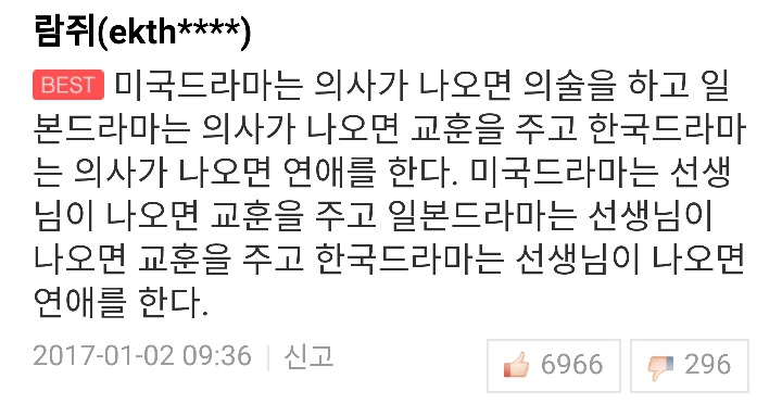 한국은 선생님이 나오면 러브라인 못 잃어....