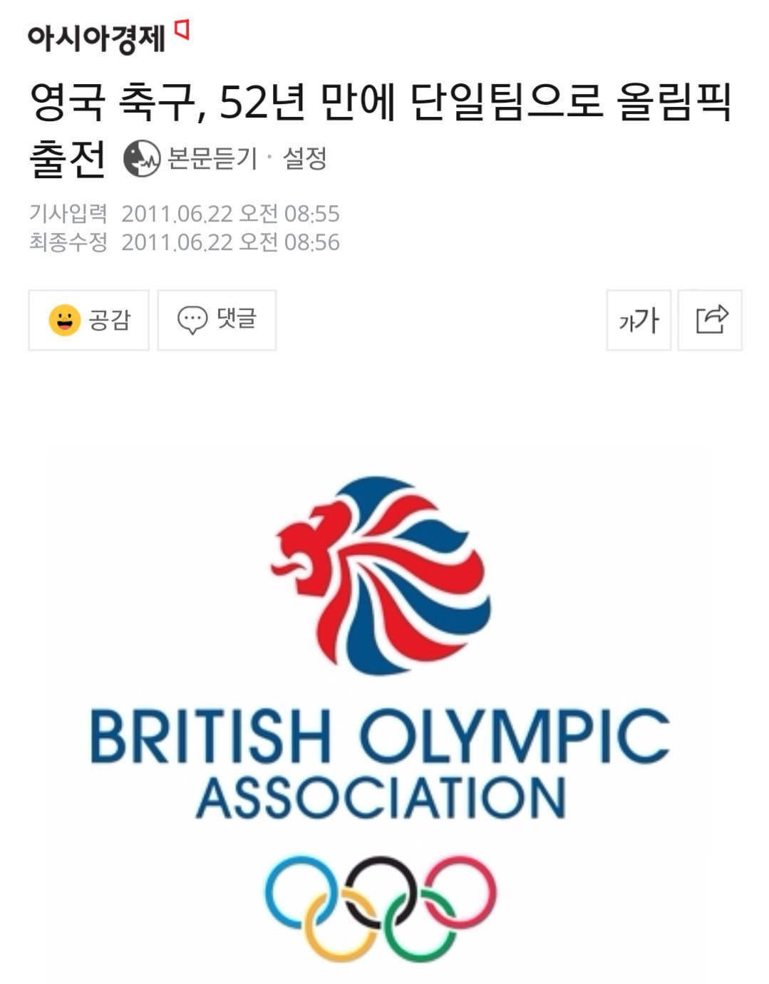 52년만에 영국 단일팀을 구성해서 올림픽에 출전하게 됩니다.