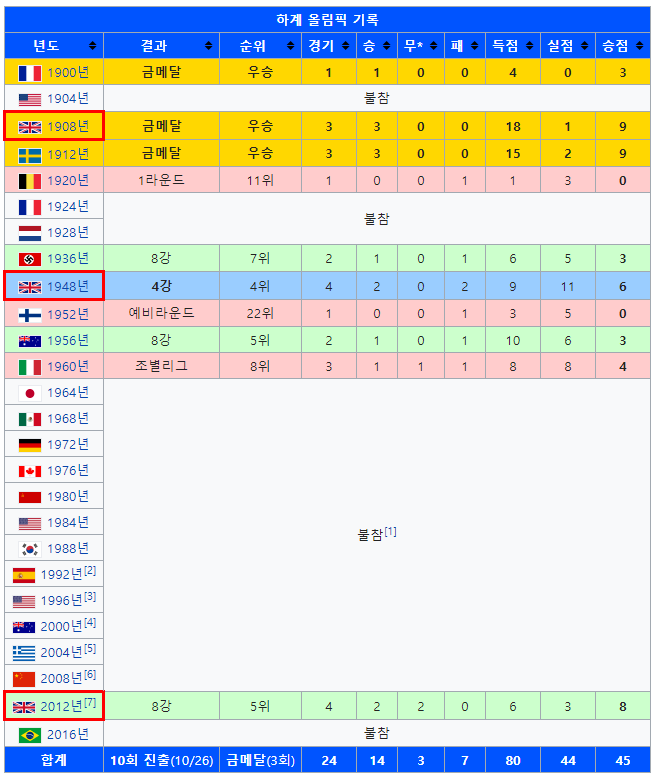 A3. 아까 위에서 FIFA가 영국한테만 예외를 줬다고 했지? 근데 올림픽은 국가대항전이기 때문에 4개 협회가 다 출전할 수가 없었는데 그러다보니까 협회들끼리 갈등이 너무 심해져서 그냥 1960년 로마 올림픽 이후로 (축구한정) 올림픽 출전을 안했었음