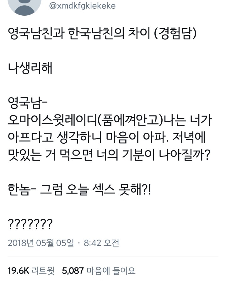작성자라크샤사 작성시간 18.07.14 오마이스윗레이디만 빼면 저거 ㄹㅇ이고 저게 정상인데 저게 대단해 보이는게 슬프다