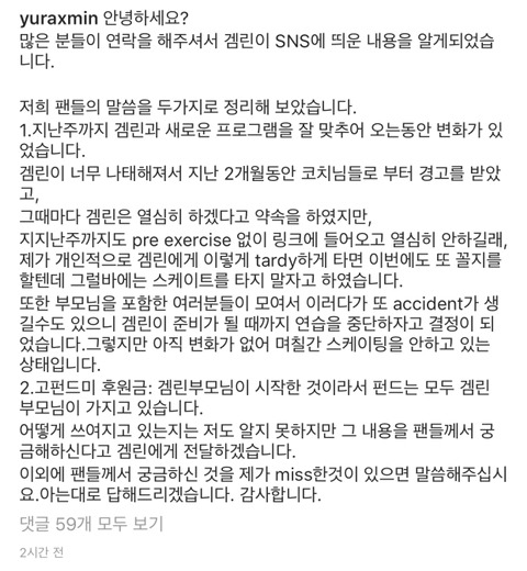 근데 알고보니까 모금은 겜린 부모님이 시작한거;; 어떻게 쓰여지고 있는지도 모름;; 근데 팀 해체된다뇨;; 그 돈은 어디로 감? (아래 민유라선수 인스타 참고)
