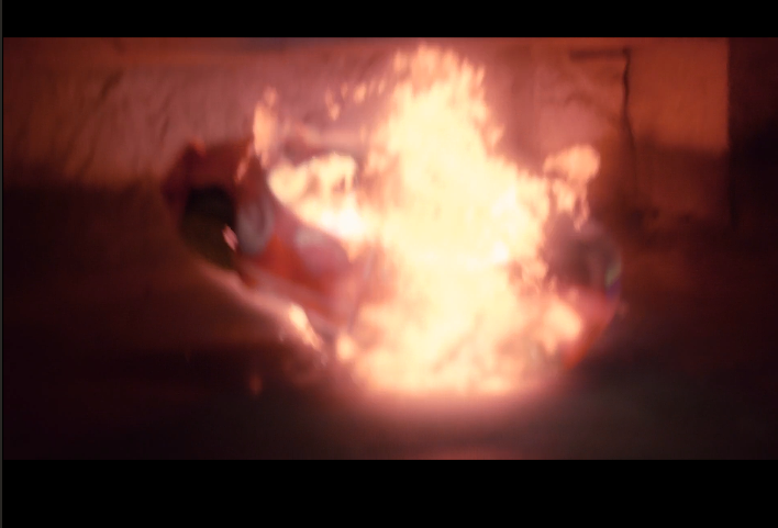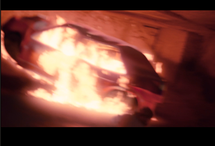 불타는 차가 사라지고 파피용이 거꾸로 바닥에 꽂혀있는 듯 합니다.